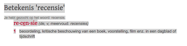 Oke, laten we even beginnen met wat een recensie eigenlijk is. Als je in de (online) dikke Van Dale kijkt, zie je dit: