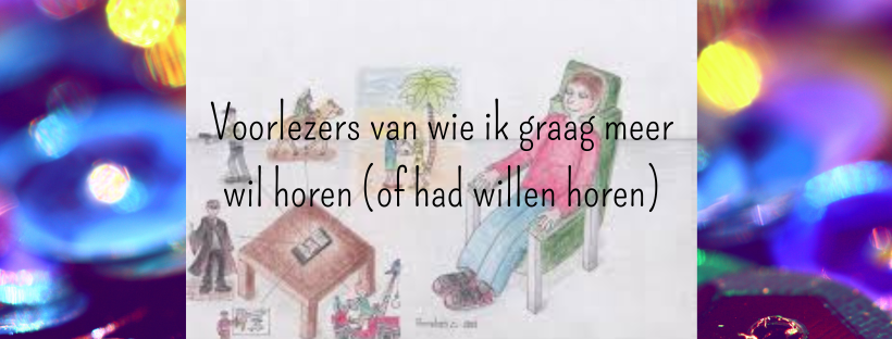 Luisterboeken zijn sowieso heerlijk, maar sommige voorlezers zijn extra fijn. Dat zijn voorlezers die het voorlezen tot een kunst hebben verheven, die duidelijk plezier hebben in het voorlezen en die weten waar en hoe ze stemmetjes moeten inzetten. Als ik twijfel of ik een boek wil luisteren en ik zie een van die voorlezers staan, dan is dat net het duwtje wat me over de streep haalt. Van die voorlezers zou ik graag meer willen horen, of, als ze al dood zijn, had ik graag meer van ze willen horen.