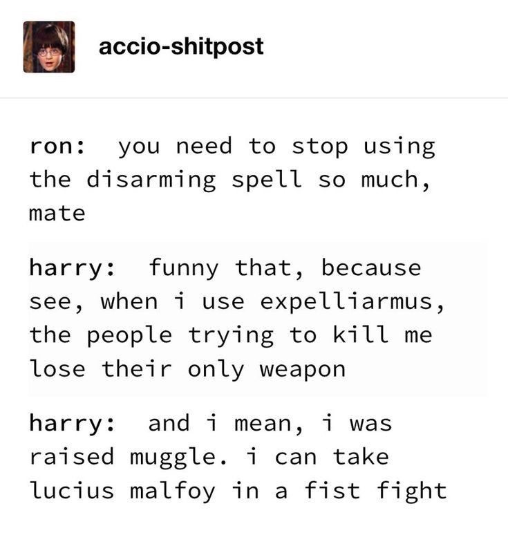 Op zich heeft Harry hier een punt. Als je iemand z’n enige wapen afpakt (en laten we eerlijk zijn, die tovenaars zijn niet echt goed in kickboksen of karate), dan is diegene niet meer in staat om jou te doden. Dus ja, met expelliarmus kun je je leven redden. Zeker als je ook nog hard kunt lopen of een goeie trap uit kunt delen (pro tip: eerst die trap geven en dan wegrennen: links rechts links rechts links rechts).