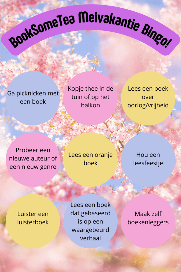 Vandaag begint de meivakantie*, en daarom is het tijd voor een toffe bingo! Ik deel vandaag de bingo en tips om de bingo’s te halen. Deze vakantie duurt ruim twee weken, dus er is echt wel tijd om, tussen Pasen, Koningsdag en 4/5 mei (80 jaar vrijheid!) wat te lezen, te luisteren en/of een kopje thee te drinken. Graag gedaan!